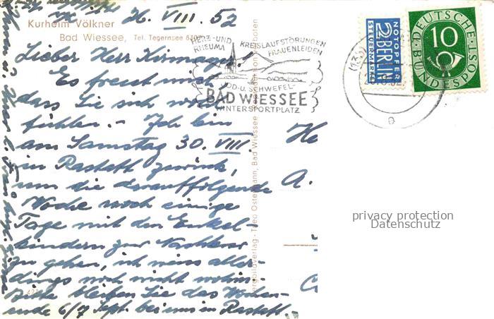 74060402 alte Postkarte BAD WIEssEE Tegernsee Kurheim Voelkner postalisch gelaufen Erhaltung siehe scans [FriedD77] KatCode: 11110009182111