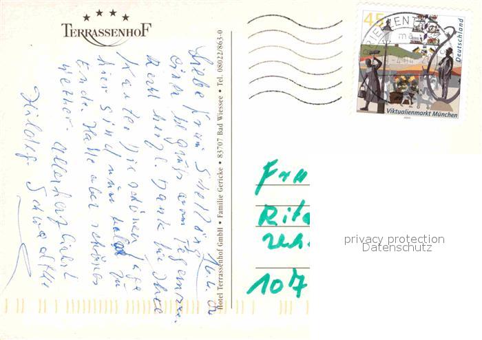 72784785 alte Postkarte Bad Wiessee Terrassenhof postalisch gelaufen Erhaltung siehe scans [LiesaD40] KatCode: 11110009182111