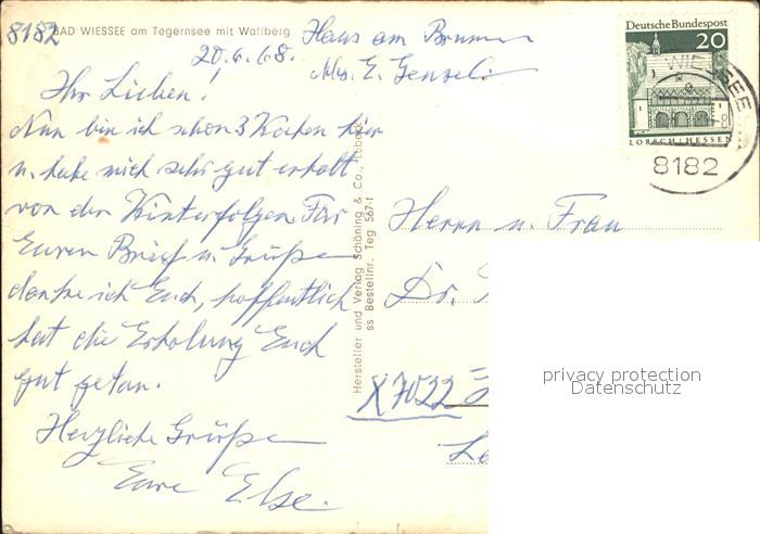 72557107 alte Postkarte Bad Wiessee Wallberg postalisch gelaufen Erhaltung siehe scans [KathaD79] KatCode: 11110009182111