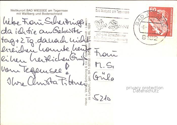 71894037 alte Postkarte Bad Wiessee Wallberg Bodenschneid Fliegeraufnahme postalisch gelaufen Erhaltung siehe scans KatCode: 11110009182111