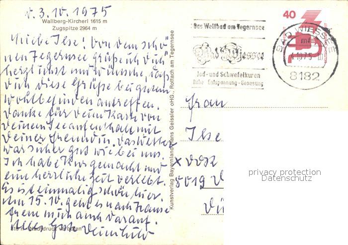72364815 alte Postkarte Bad Wiessee Wallberg-Kircherl mit Zugspitze postalisch gelaufen Erhaltung siehe scans KatCode: 11110009182111