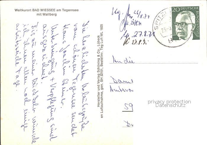 71938856 alte Postkarte Bad Wiessee Weltkurort am Tegernsee mit Wallberg Fliegeraufnahme postalisch gelaufen Erhaltung siehe scans KatCode: 11110009182111