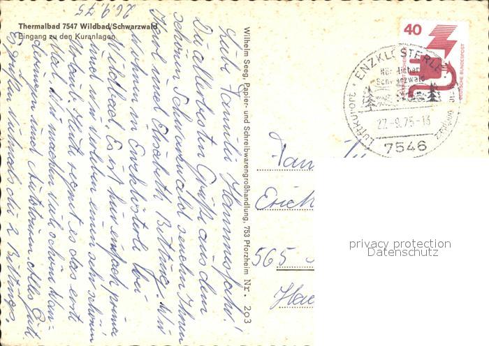 72525815 alte Postkarte Bad Wildbad Eingang zu den Kuranlagen Thermalbad Kurort im Schwarzwald postalisch gelaufen Erhaltung siehe scans KatCode: 11110008235079