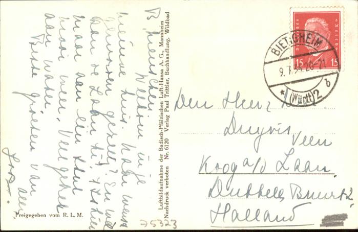 71026621 alte Postkarte Bad Wildbad Fliegeraufnahme postalisch gelaufen KatCode: 11110008235079