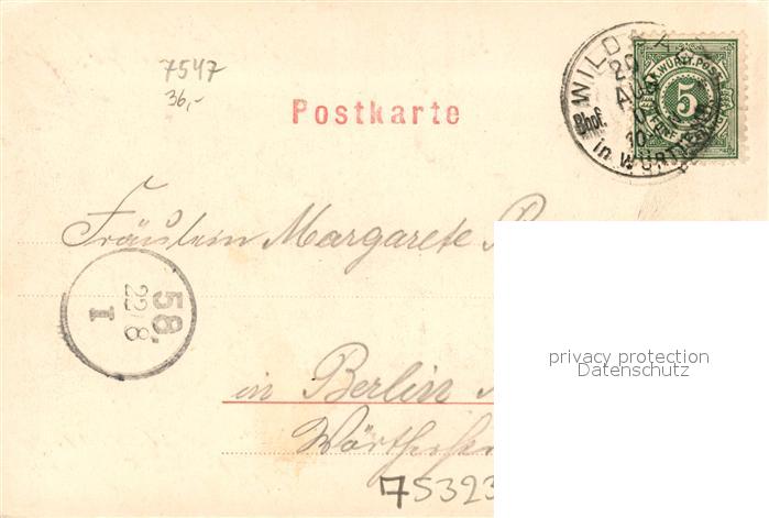 43075562 alte Postkarte Bad Wildbad Grosse Tanne Rollwassertal Forsthaus postalisch gelaufen Erhaltung siehe scans [FriedD77] KatCode: 11110008235079