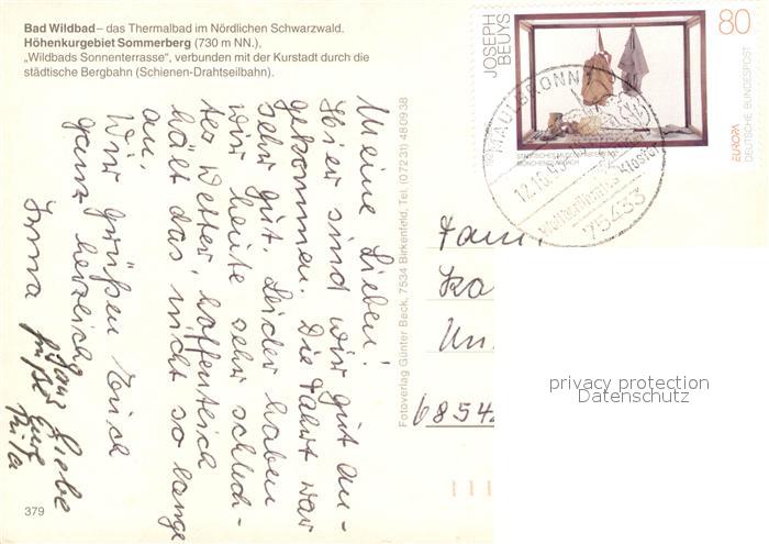 73070755 alte Postkarte Bad Wildbad Hoehenkurgebiet Sommerberg Schwarzwald Fliegeraufnahme postalisch gelaufen Erhaltung siehe scans [FriedD77] KatCode: 11110008235079