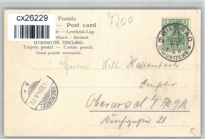 30838311 alte Postkarte Bad Wildbad Krankenheim postalisch gelaufen KatCode: 11110008235079