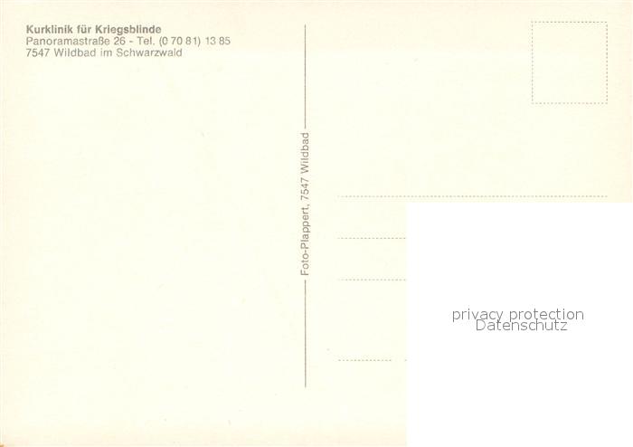 73740722 Bad Wildbad Kurklinik fuer Kriegsblinde im Schwarzwald postalisch nicht gelaufen Erhaltung siehe scans [FriedD77] KatCode: 11110008235079
