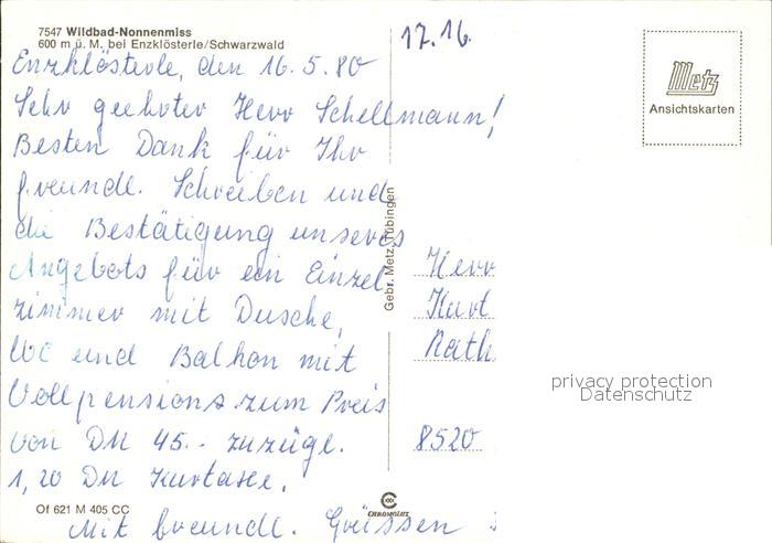 71830385 Bad Wildbad Nonnenmiss Enzkloesterle postalisch nicht gelaufen Erhaltung siehe scans KatCode: 11110008235079