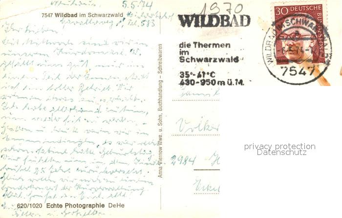 73136908 alte Postkarte Bad Wildbad Ortsmotiv mit Kirche postalisch gelaufen Erhaltung siehe scans [FriedD77] KatCode: 11110008235079