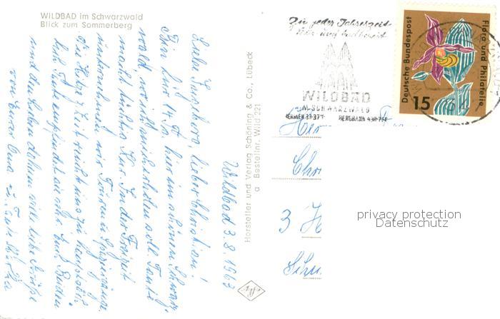 73761764 alte Postkarte Bad Wildbad Panorama Blick zum Sommerberg postalisch gelaufen Erhaltung siehe scans [FriedD77] KatCode: 11110008235079