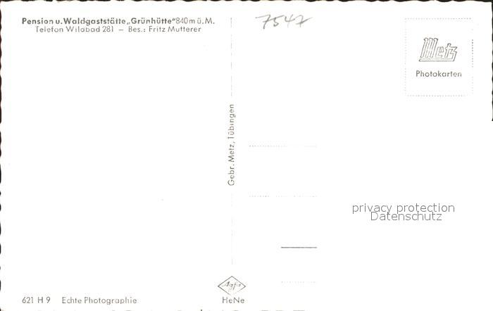 41801159 Bad Wildbad Pension Waldgastsaette Gruenhuette postalisch nicht gelaufen Erhaltung siehe scans KatCode: 11110008235079