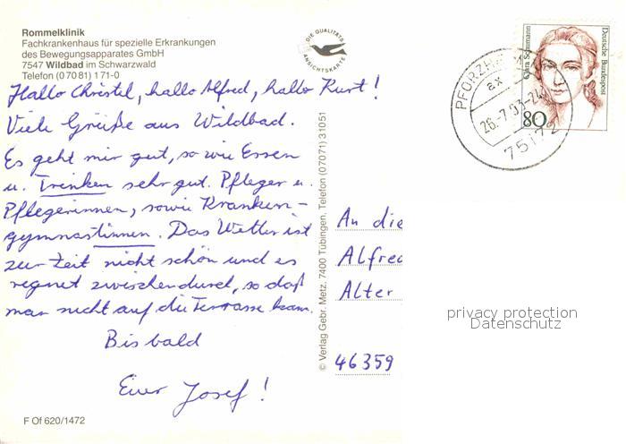72684722 alte Postkarte Bad Wildbad Rommelklinik postalisch gelaufen Erhaltung siehe scans [AndreD76] KatCode: 11110008235079