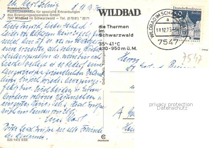 72882931 alte Postkarte Bad Wildbad Rommelklinik postalisch gelaufen Erhaltung siehe scans [AndreD76] KatCode: 11110008235079