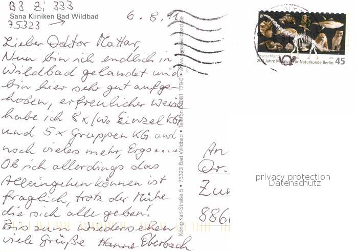 72893233 alte Postkarte Bad Wildbad Sanatorium Klinik postalisch gelaufen Erhaltung siehe scans [AndreD76] KatCode: 11110008235079