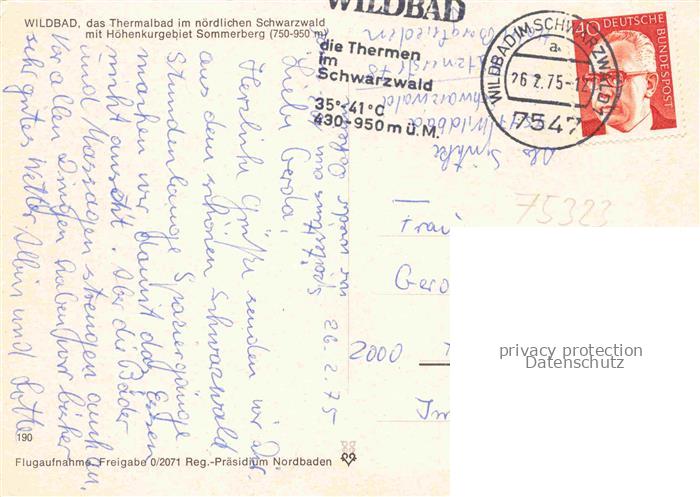 74031779 alte Postkarte BAD WILDBAD Schwarzwald Panorama Thermalbad Hoehenkurgebiet Sommerberg postalisch gelaufen Fliegeraufnahme Erhaltung siehe scans [FriedD77] KatCode: 11110008235079