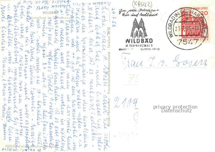 74031780 alte Postkarte BAD WILDBAD Schwarzwald Panorama Thermalbad im Schwarzwald postalisch gelaufen Fliegeraufnahme Erhaltung siehe scans [FriedD77] KatCode: 11110008235079