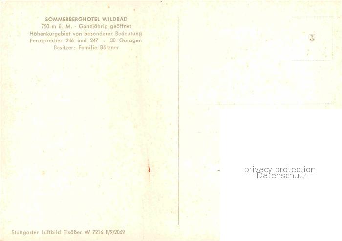 72831809 Bad Wildbad Sommerberghotel Schwarzwald Fliegeraufnahme postalisch nicht gelaufen Erhaltung siehe scans [FriedD77] KatCode: 11110008235079