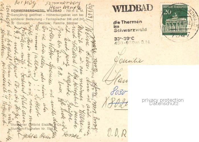 73636121 alte Postkarte Bad Wildbad Sommerberghotel Schwarzwald Fliegeraufnahme postalisch gelaufen Erhaltung siehe scans [FriedD77] KatCode: 11110008235079