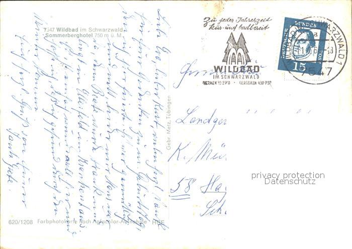 72314240 alte Postkarte Bad Wildbad Sommerberghotel Schwarzwald postalisch gelaufen Erhaltung siehe scans KatCode: 11110008235079