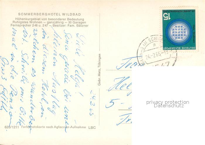 73719522 alte Postkarte Bad Wildbad Sommerberghotel Wildbad Terrasse Fernsicht Schwarzwald postalisch gelaufen Erhaltung siehe scans [FriedD77] KatCode: 11110008235079