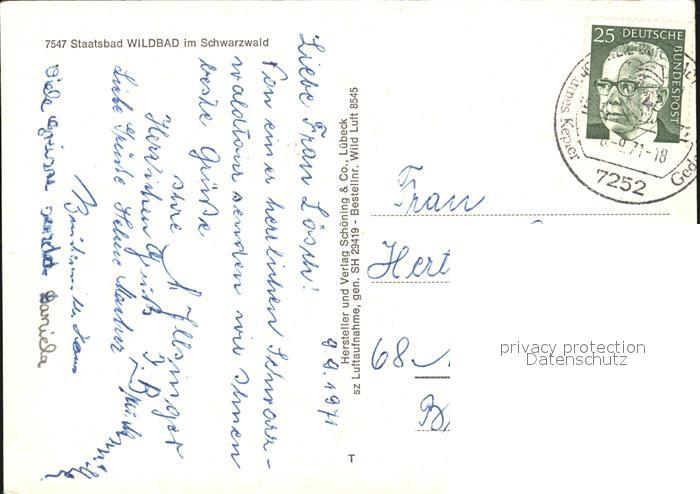 72427019 alte Postkarte Bad Wildbad Staatsbad im Schwarzwald Fliegeraufnahme postalisch gelaufen Erhaltung siehe scans KatCode: 11110008235079