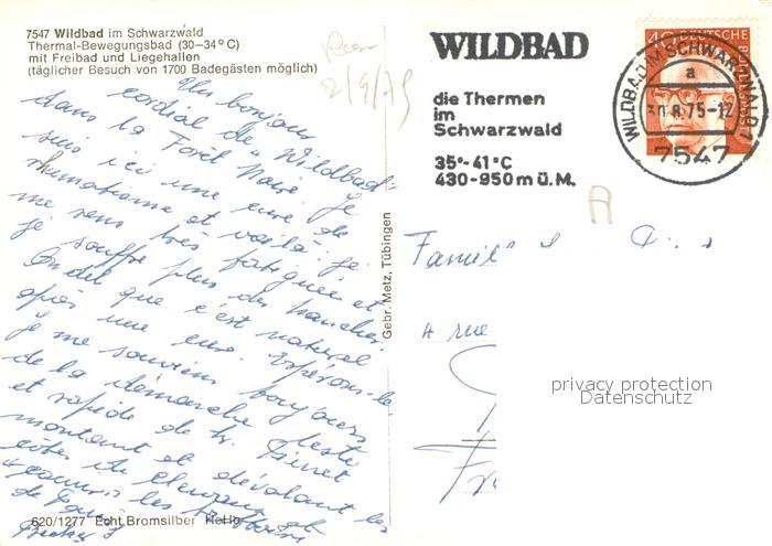 72938231 alte Postkarte Bad Wildbad Thermal Bewegungsbad Kurhaus Freibad postalisch gelaufen Erhaltung siehe scans [FriedD77] KatCode: 11110008235079