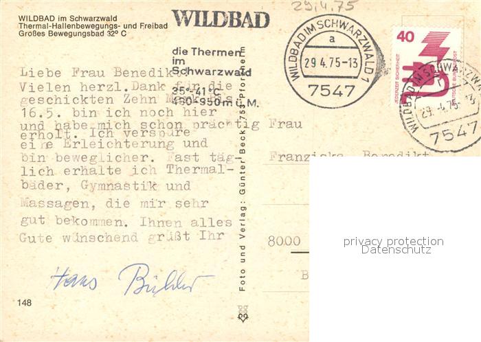 73143759 alte Postkarte Bad Wildbad Thermal Hallenbewegungsbad postalisch gelaufen Erhaltung siehe scans [FriedD77] KatCode: 11110008235079