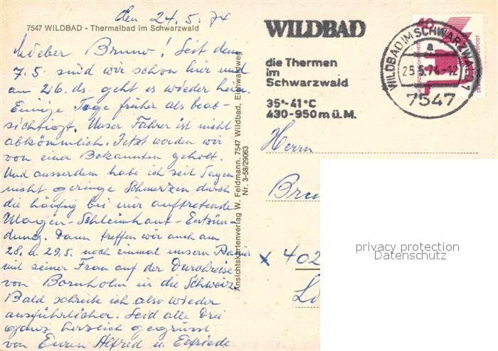 72785222 alte Postkarte Bad Wildbad Thermalbad im Schwarzwald Fliegeraufnahme postalisch gelaufen Erhaltung siehe scans [FriedD77] KatCode: 11110008235079