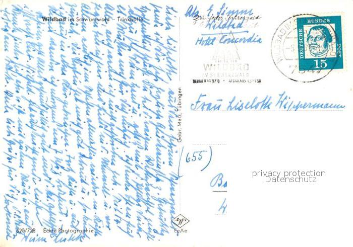 73335955 alte Postkarte Bad Wildbad Trinkhalle Kurort im Schwarzwald postalisch gelaufen Erhaltung siehe scans [FriedD77] KatCode: 11110008235079
