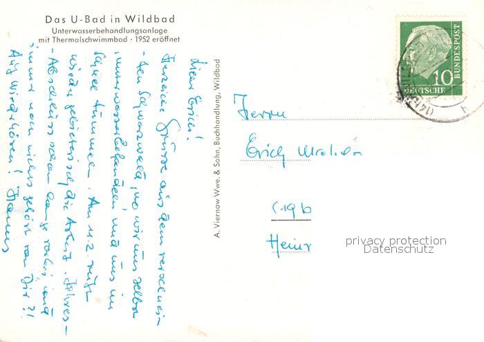 73040943 alte Postkarte Bad Wildbad U Bad Unterwasserbehandlung Thermalschwimmbad postalisch gelaufen Erhaltung siehe scans [FriedD77] KatCode: 11110008235079