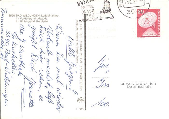 72240234 alte Postkarte Bad Wildungen Altstadt Kurviertel Fliegeraufnahme postalisch gelaufen Erhaltung siehe scans KatCode: 11110006635003