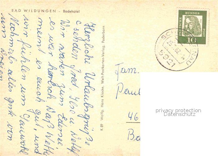 72830617 alte Postkarte Bad Wildungen Badehotel postalisch gelaufen Erhaltung siehe scans [FriedD77] KatCode: 11110006635003