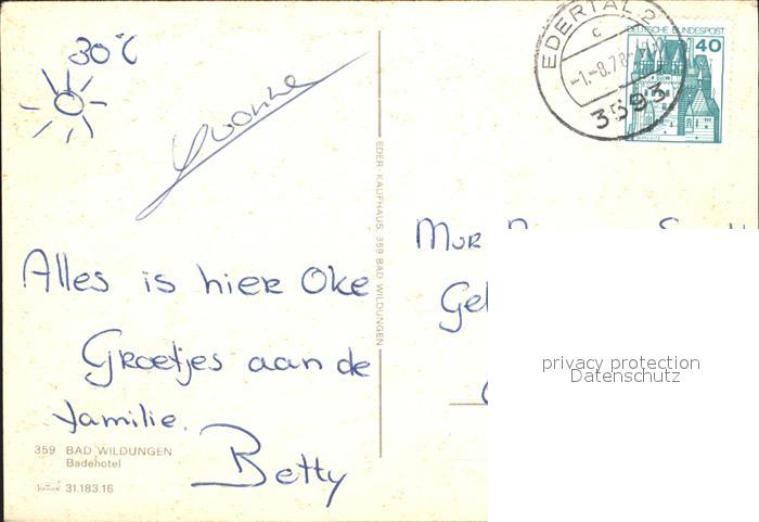 72378713 Bad Wildungen Badehotel postalisch nicht gelaufen Erhaltung siehe scans Alte Ansichtskarte Postkarte Andr Katcode 11110006635003