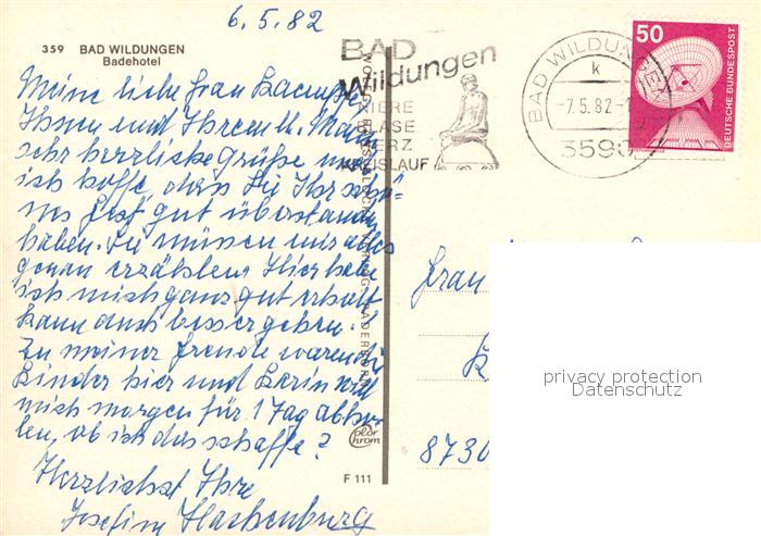 73015230 alte Postkarte Bad Wildungen Badehotel postalisch gelaufen Erhaltung siehe scans [NatalD47] KatCode: 11110006635003