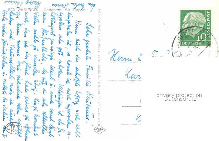 72812478 alte Postkarte Bad Wildungen Badehotel mit Kurpark postalisch gelaufen Erhaltung siehe scans [FriedD77] KatCode: 11110006635003