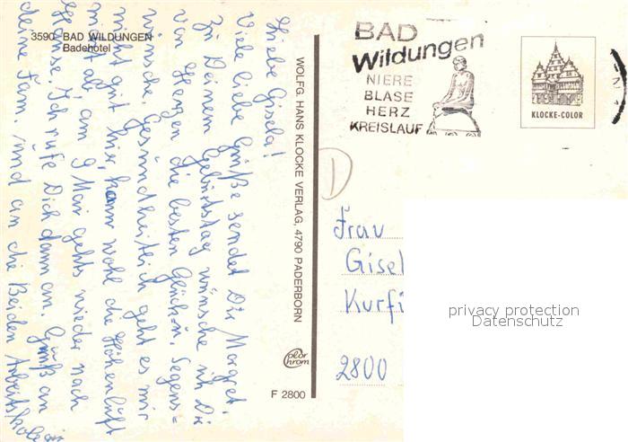 72781061 alte Postkarte Bad Wildungen Badehotel Park postalisch gelaufen Erhaltung siehe scans [FriedD77] KatCode: 11110006635003