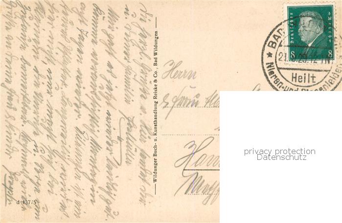 73769342 alte Postkarte Bad Wildungen Blick vom Waldhaus postalisch gelaufen Erhaltung siehe scans [WerneD78] KatCode: 11110006635003
