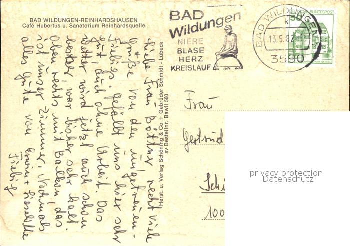 72578340 alte Postkarte Bad Wildungen Cafe Hubertus Sanatorium Rheinhardsquell postalisch gelaufen Erhaltung siehe scans [AndreD76] KatCode: 11110006635003