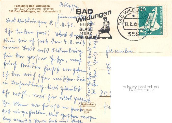 73685088 alte Postkarte Bad Wildungen Fachklinik der LVA Oldenburg Bremen postalisch gelaufen Erhaltung siehe scans [FriedD77] KatCode: 11110006635003