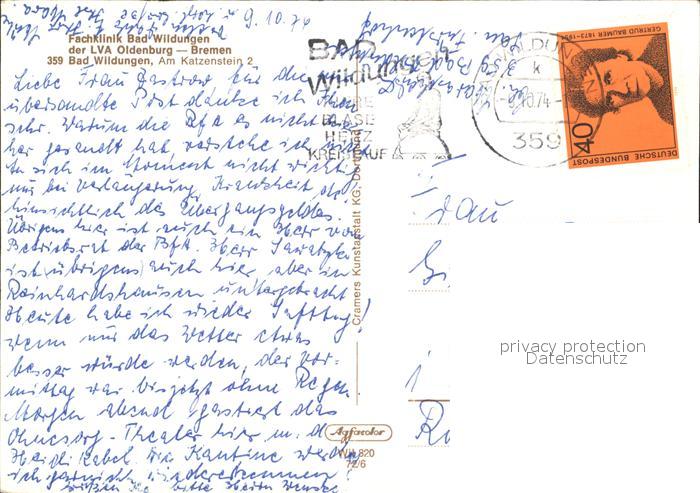 72514303 alte Postkarte Bad Wildungen Fachklinik der LVA Oldenburg Bremen postalisch gelaufen Erhaltung siehe scans KatCode: 11110006635003