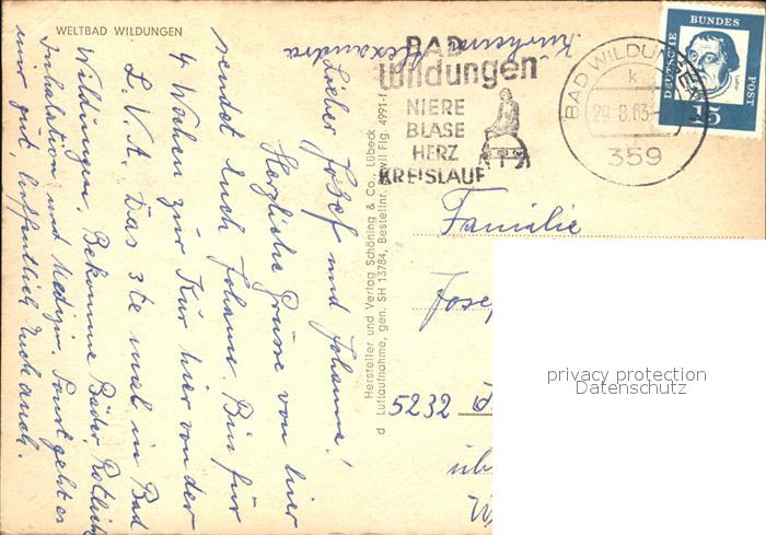 72492464 alte Postkarte Bad Wildungen Fliegeraufnahme postalisch gelaufen Erhaltung siehe scans KatCode: 11110006635003
