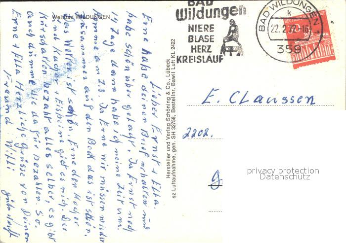 72293325 alte Postkarte Bad Wildungen Fliegeraufnahme postalisch gelaufen Erhaltung siehe scans KatCode: 11110006635003