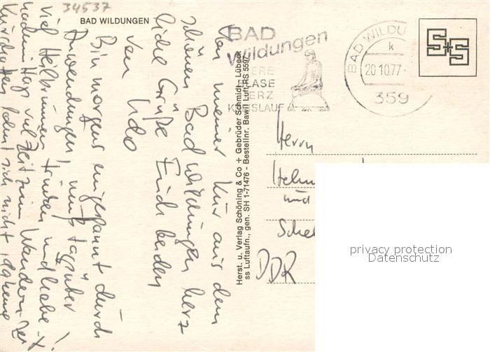 73668616 alte Postkarte Bad Wildungen Fliegeraufnahme postalisch gelaufen Erhaltung siehe scans [WerneD78] KatCode: 11110006635003
