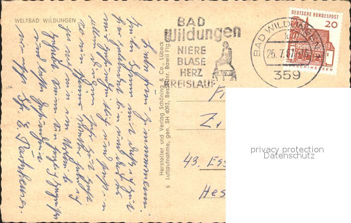 72200136 alte Postkarte Bad Wildungen Fliegeraufnahme postalisch gelaufen Erhaltung siehe scans KatCode: 11110006635003