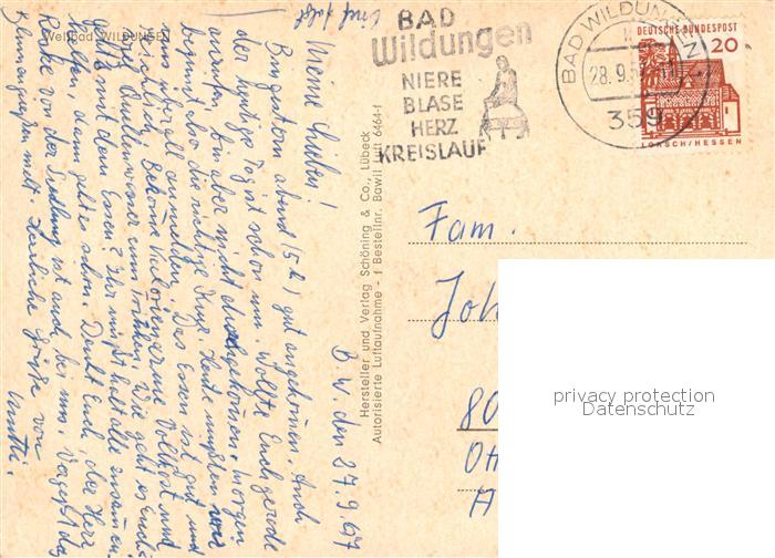 73170559 alte Postkarte Bad Wildungen Fliegeraufnahme postalisch gelaufen Erhaltung siehe scans [FriedD77] KatCode: 11110006635003