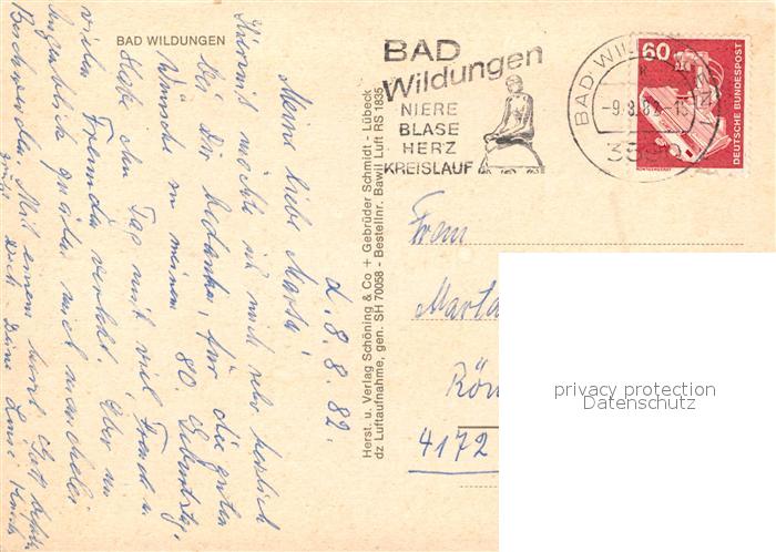 73162881 alte Postkarte Bad Wildungen Fliegeraufnahme postalisch gelaufen Erhaltung siehe scans [FriedD77] KatCode: 11110006635003