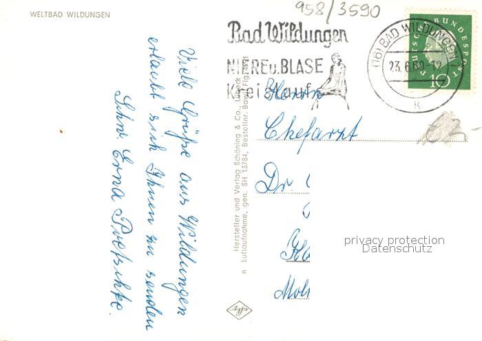 73161711 alte Postkarte Bad Wildungen Fliegeraufnahme postalisch gelaufen Erhaltung siehe scans [WerneD78] KatCode: 11110006635003