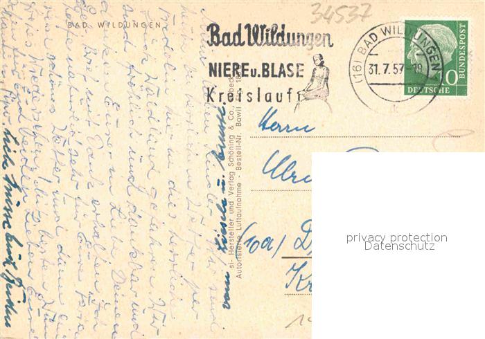 72868298 alte Postkarte Bad Wildungen Fliegeraufnahme postalisch gelaufen Erhaltung siehe scans [LiesaD40] KatCode: 11110006635003