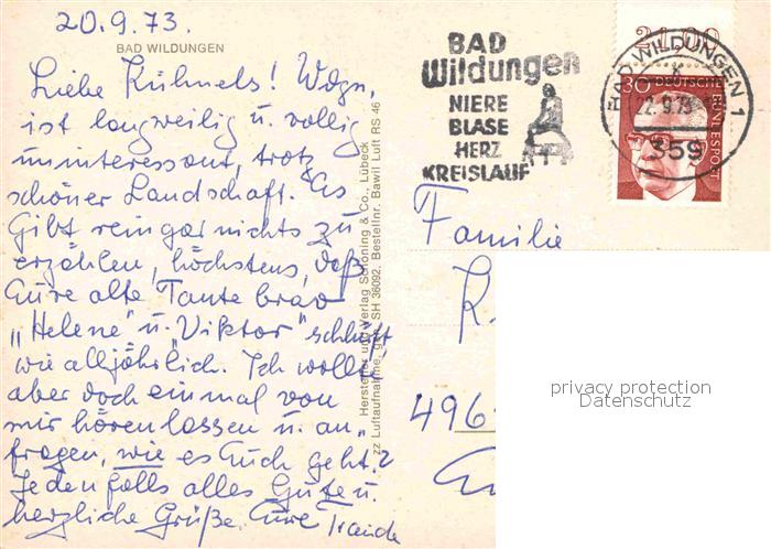 72858930 alte Postkarte Bad Wildungen Fliegeraufnahme postalisch gelaufen Erhaltung siehe scans [FriedD77] KatCode: 11110006635003